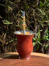 1 Cuia de porongo revestida trançada em material sintético colorido