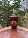 Kit chimarrão: Cuia de Porongo Revestida em Sintético Trançada + Bomba em inox decorada com pingente + Basic + Tapa Erva