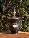 Kit chimarrão: Cuia de Porongo Revestida em Sintético Trançada + Bomba em inox decorada com pingente + Pulseira Basic